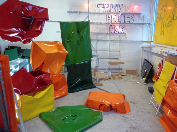Atelierinstallasjonen Ja, Ja, Ja. Dimensjoner variable Blandede teknikker (Foto: Stein Koksvik)