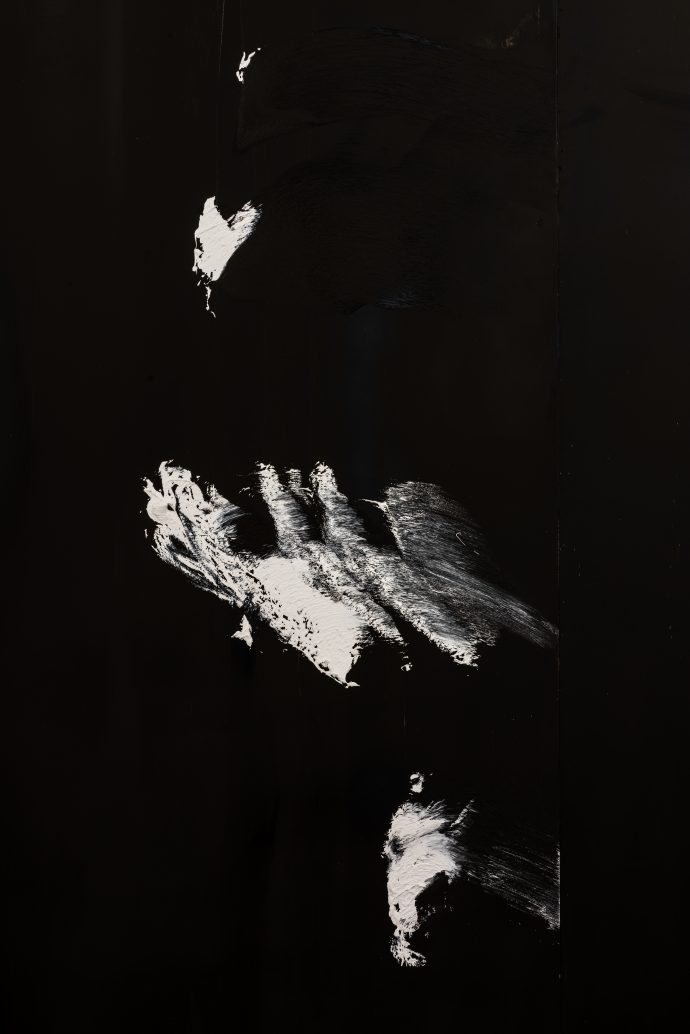 Dolvens tilstedeværelse forsterkes av at hun har skrevet på flere av veggene med blyant. I foajéen inn til museet har hun skrevet en lengre tekst om hva som forandrer seg når man reiser til helvete, og hvordan man overlever ved hjelp av pusten. Hennes skrift, sukk og fingeravtrykk følger oss gjennom hvert rom, denne intimiteten er intens, men også beroligende når man vandrer rundt alene.