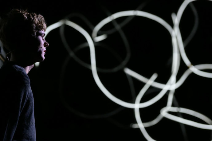 Scenebildet tilfører ikke mer enn det som er ytterst nødvendig: En knute av neon-lys som heises opp over ungdommene. Fem skuespillere kommer ut i naturlig påkledning, og skal representere den unge generasjonen. De har fått i oppdrag å fremføre de vanskelige tenårene, men dessverre blir det åpenbart at det ikke er de selv som har skrevet manuset.