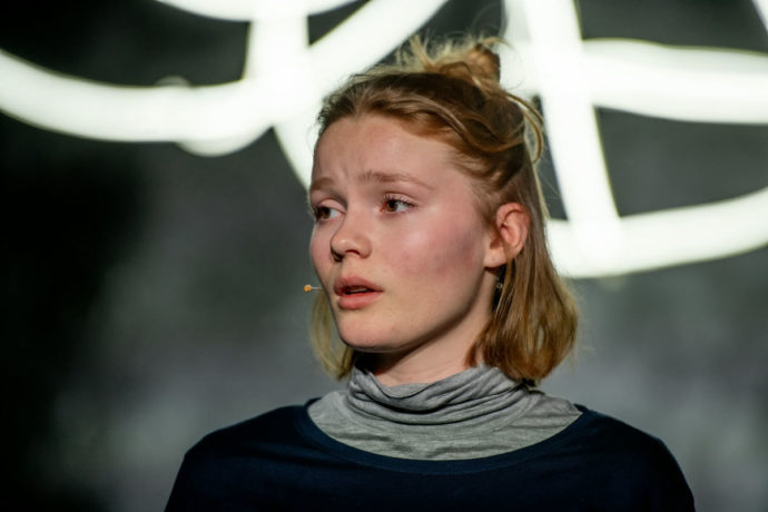 En som skiller seg ut, er Ines Høysæter Asserson, som flere vil kjenne igjen fra «Harajuku» (2018). Hun er gitt to monologer, og har et spesielt kaliber. Uten å gjøre altfor mye ut av seg, stjeler hun showet, og viser til god timing tross manusets ofte rytmiske passasjer.