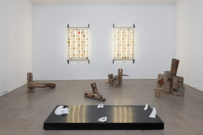 Verket får en helt egen tyngde i sin enkelhet som fungerer godt i de små rommene på kunstsenteret.