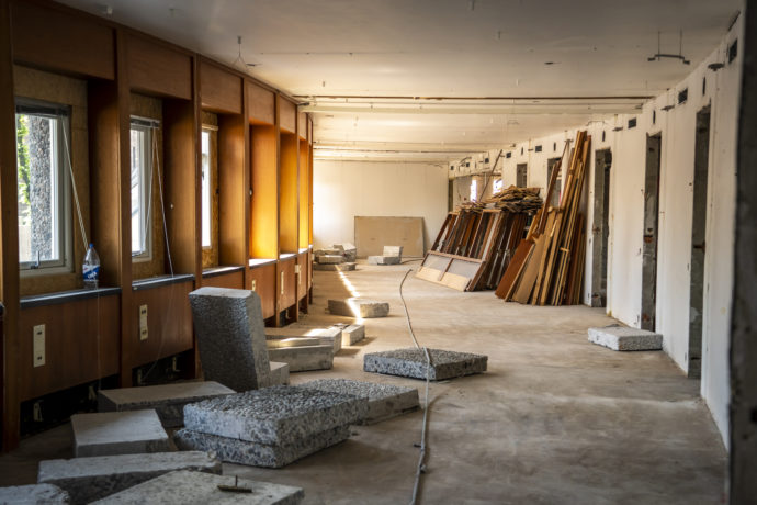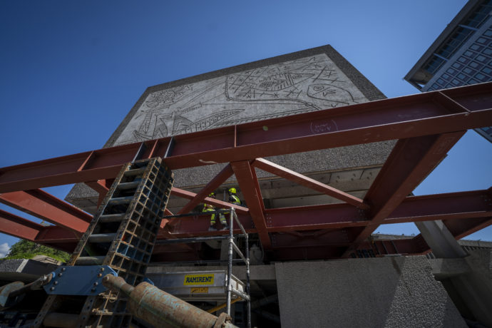 Prosessen med riving av det historiske bygget har imidlertid allerede startet. Planen er at de to kunstverkene skal sages ned i løpet av sommeren. Deretter skal de lagres inntil den endelige plasseringen i det nye regjeringskvartalet er klart.