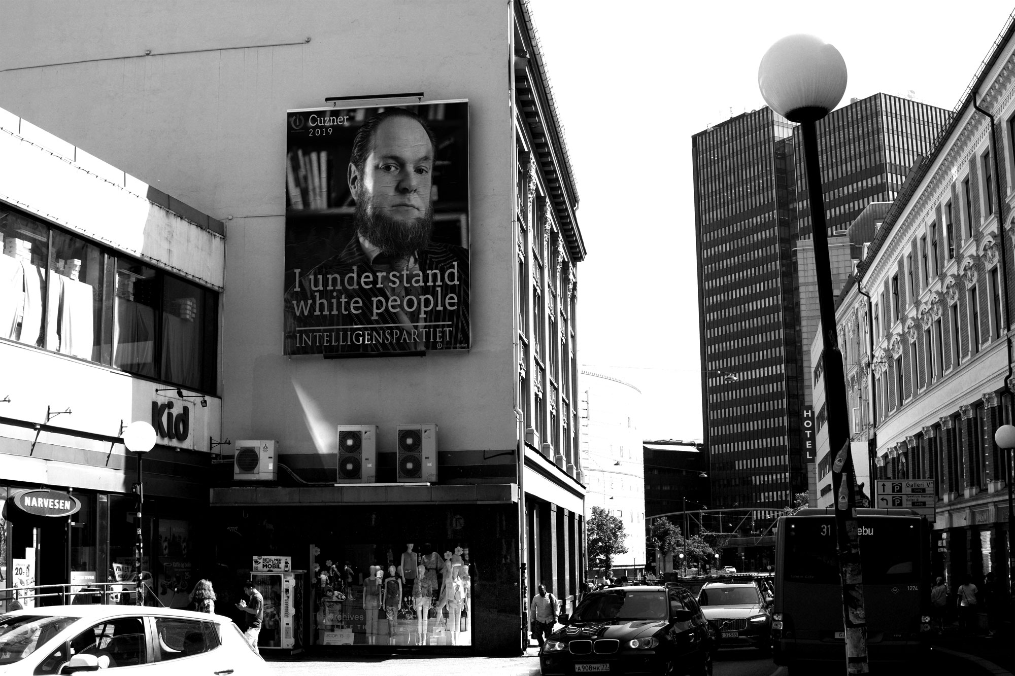 Hvit mann proklamerer «I understand white people» i mangfoldig strøk. Kunst eller propaganda?
