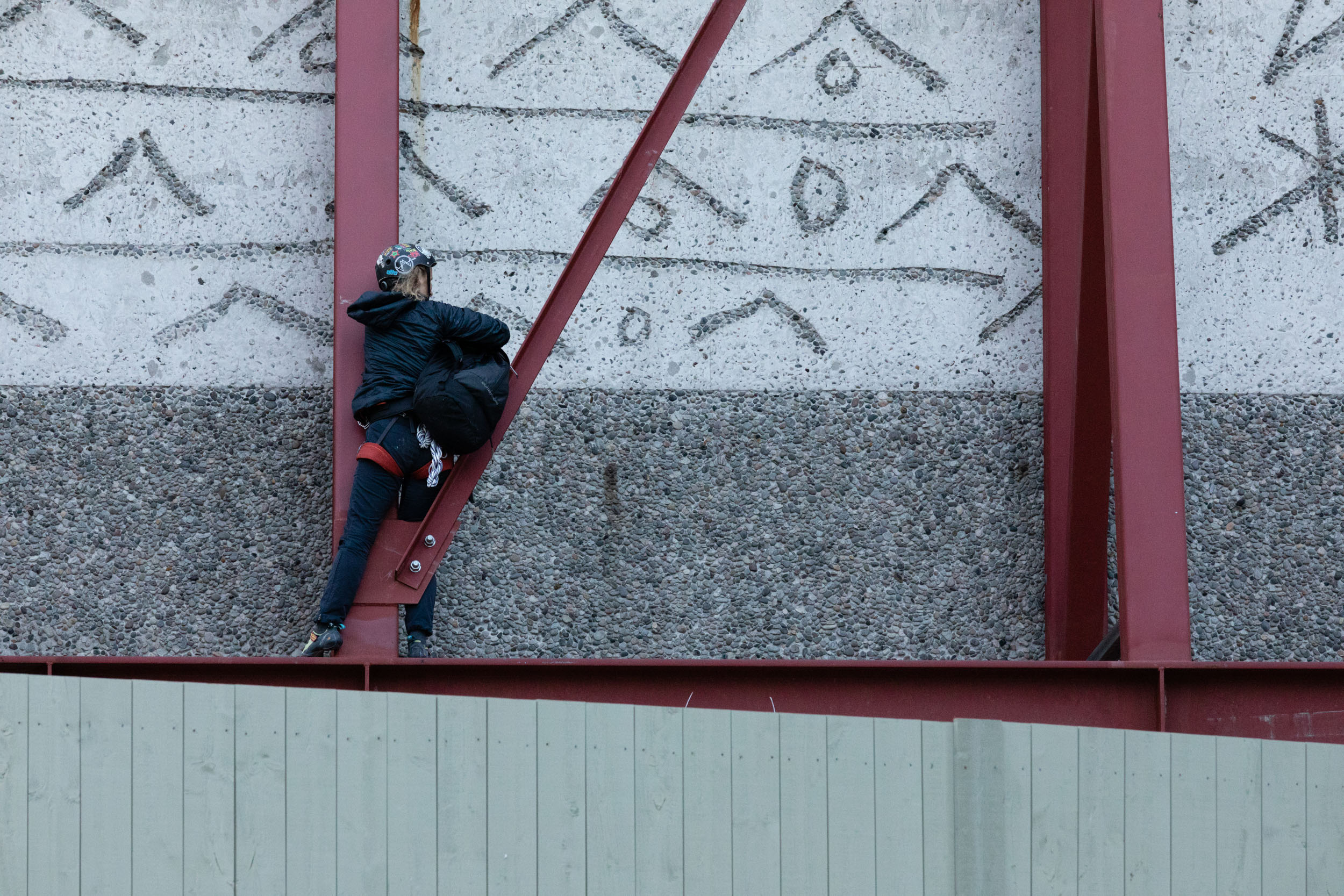 Y-blokka-aktivist tok seg over gjerdet med fullt klatreutstyr for å demonstrere
