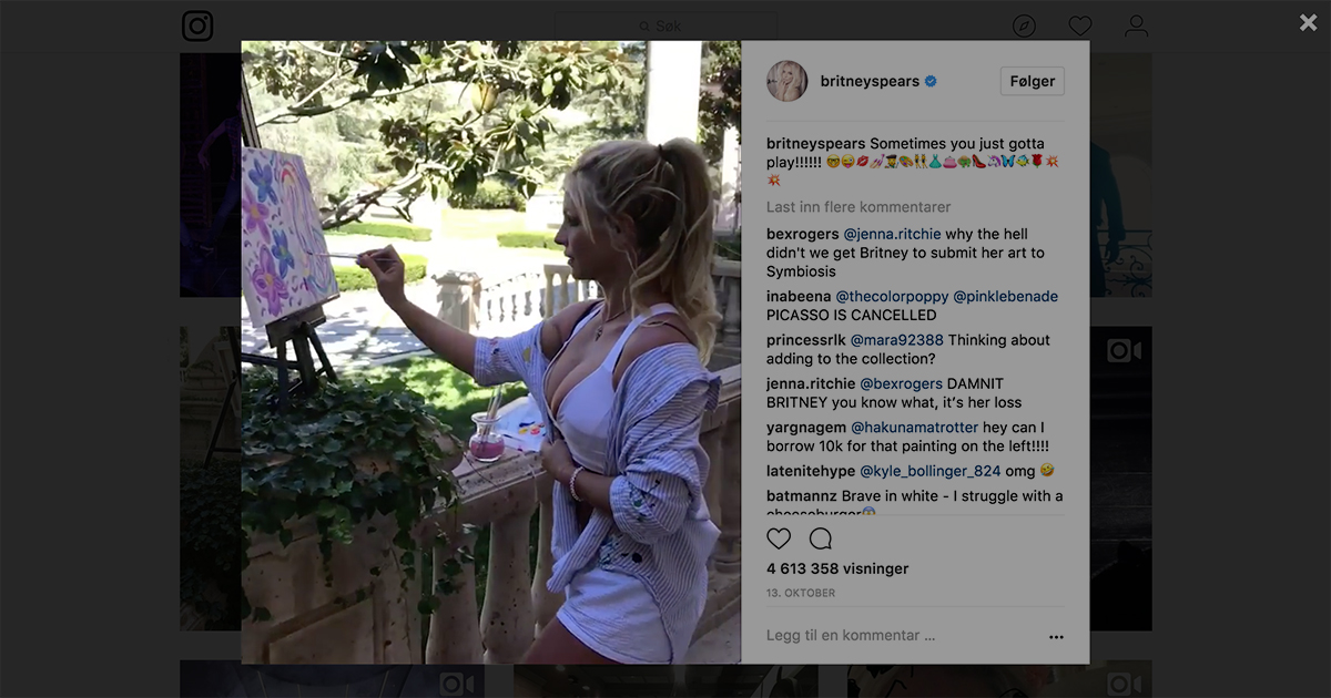 Britney Spears solgte akkurat et av Instagram-maleriene sine for 80 000 kroner
