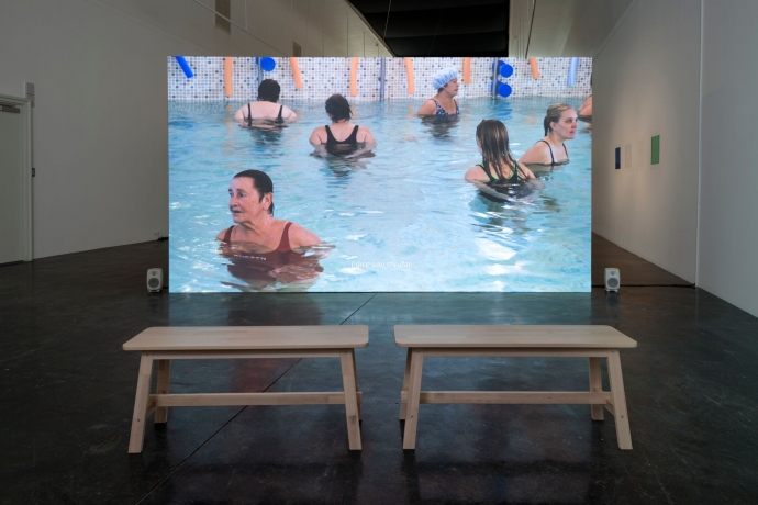 Avgangsutstillingen byr på så mangt, men ett verk utmerker seg umiddelbart. «Som en förlängning av din kropp» (2019), av Ina Porselius, er en herlig, yndig og noe absurd videoprojeksjon som viser oss svansende, badende kvinner i badedrakt og badehette. De utfører en kombinasjon av synkronsvømming og allsang. Videoen er projisert på en enorm flate som krever betrakterens oppmerksomhet, men det hadde den også fått i et mindre format.
