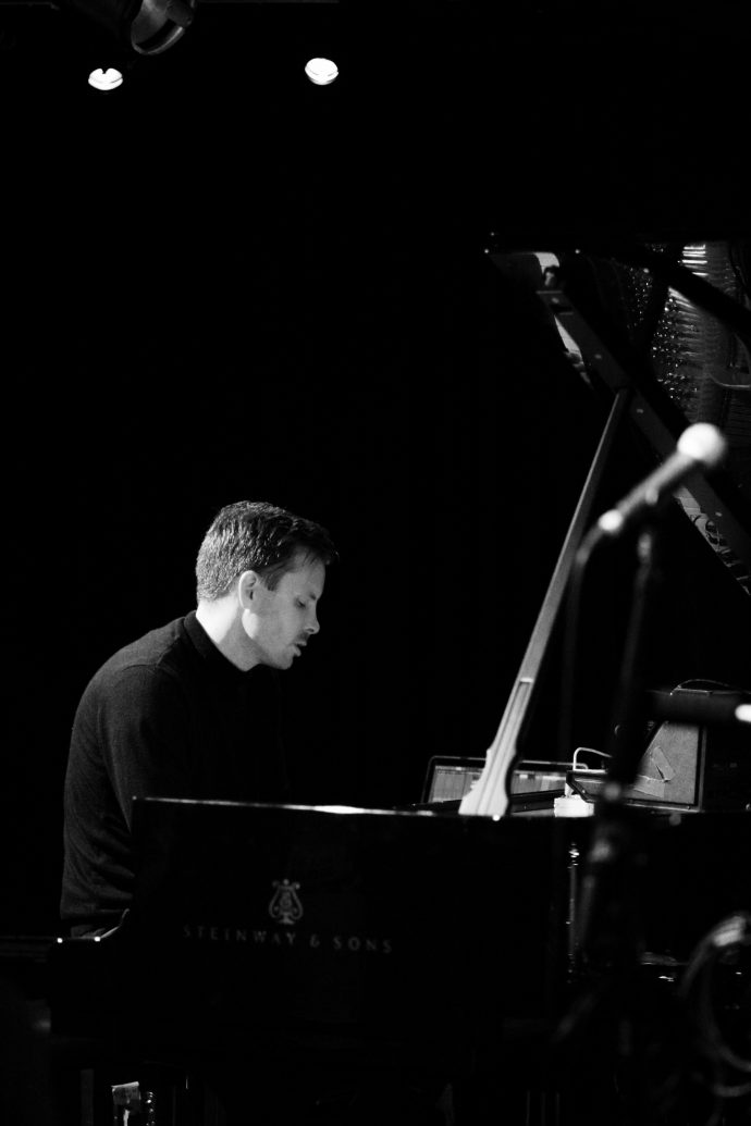 Benjamin Mørk har vært turnerende musiker i ti år, blant annet sammen med den samiske joikdronningen Mari Boine. Etter å ha hørt oss gjennom Mørks første utgivelse, er det med stor spenning vi entrer lokalet som er fylt til randen med folk i alle aldre. Han opptrer solo, utstyrt med flygel, synth, launchpad og Mac.