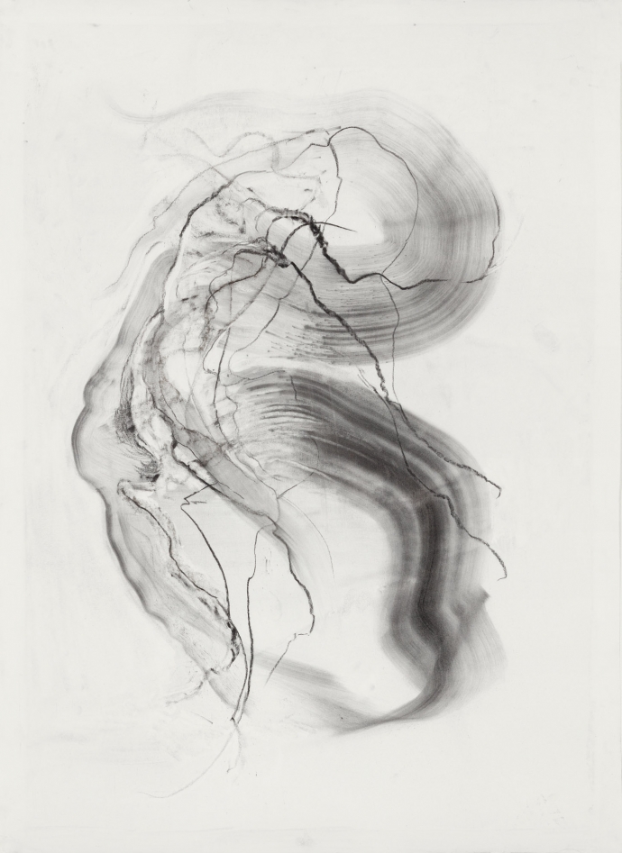 «Å møta eit noko» er en bildeserie av Magnar Moen som tar for seg kull, grafitt og sot på papir. Her blir kraft og tyngde sentralt i bildene og han sier selv at det handler om sammentrekning, ekspansjon og oppløsning. Tegningene har et direkte uttrykk som henviser til noe organisk, hvor det kroppslige også kommer til syne.