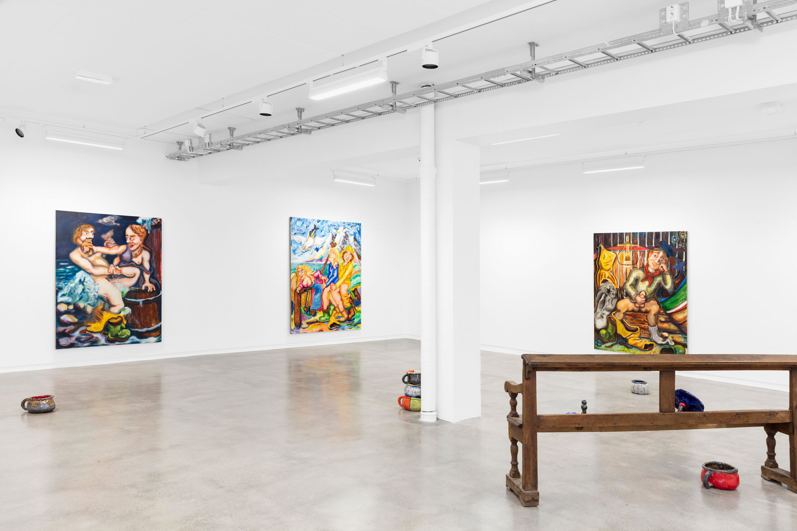 Å betrakte Audar Kantuns malerier vekker den samme kvalmen som når du innser at de ekle naboene dine også har et sexliv. I utstillingen «Høy tid» sammenfaller det vulgære innholdet med Kantuns amatørmessige form på et høyst affektivt vis. (Foto: Christian Tunge.)