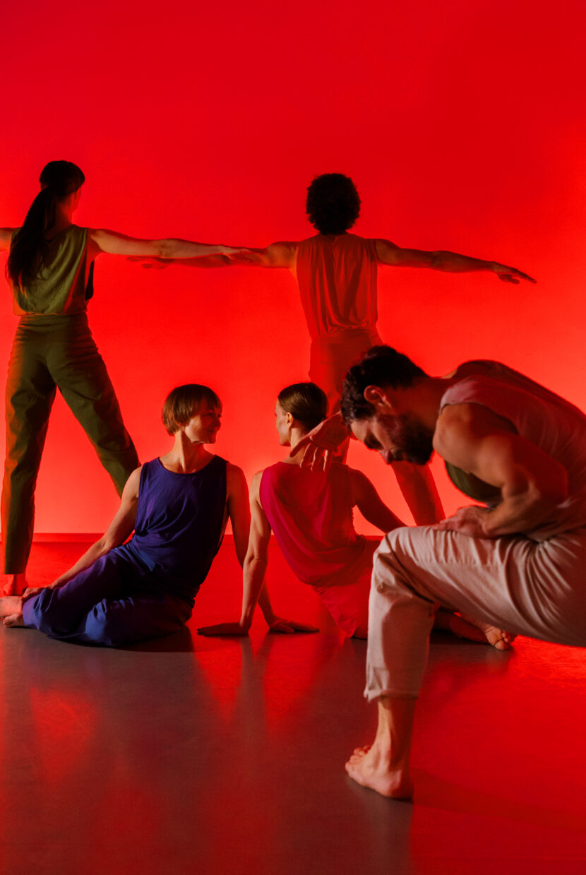 – Forestillingen er en blanding mellom koreografi og improvisasjon. Det er et spill mellom det individuelle og kollektive der alle kan lede eller følge. Danserne skifter hele tiden tilhørighet, og publikum ser avgjørelsene som tas underveis. Verket er en lek mellom det frie og strenge. Det blir som et spill, og er en vårlig fargerik feiring av livet!