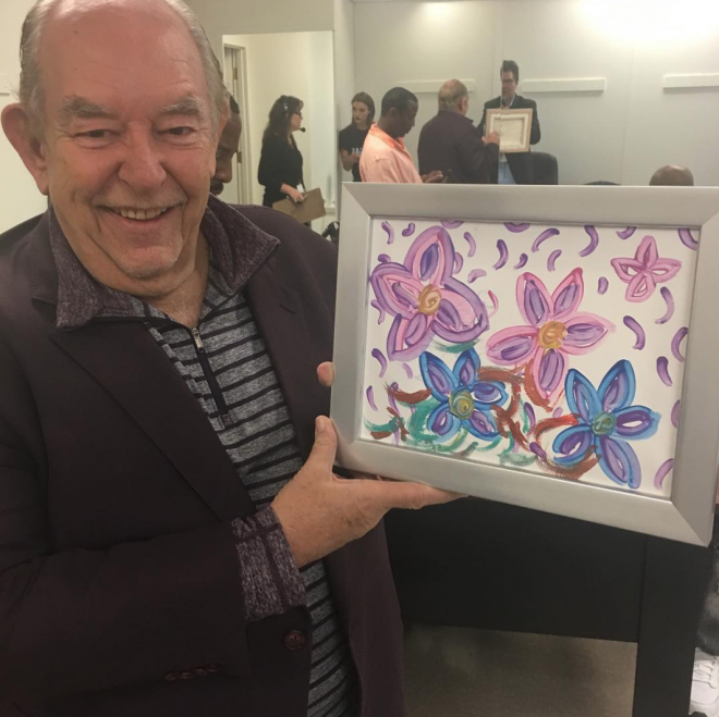 I går ble et av vannmaleriene solgt på auksjon til den amerikanske popkulturjournalisten Robin Leach. Las Vegas-mannen er tidligere programleder for «Lifestyles of the Rich and Famous», og navnet har du kanskje hørt før. Leach er ofte «namedroppet» av amerikanske rappere, som i Ludacris’ vers i Fergie-hitten «Glamorous».