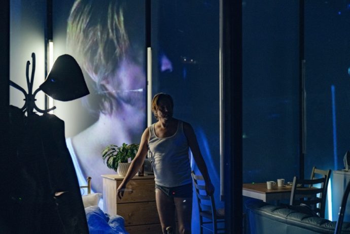 Horn leder oss inn huset hvor Marianne (spilt av Nina Ellen Ødegård) og Johan (spilt av Anders Dale) bor. Vi fikk riktignok ikke bli med hele veien inn da vi sist så Horns oppsetning, men vi fikk observere det på avstand gjennom vinduene, et grep som fikk oss til å føle oss skuelystne. Den effekten falmer bort nå som stykket video-overføres, men til gjengjeld får vi bli med helt inn. Det blir en annen opplevelse, enda stykket er det samme, og oppsetningen lik.