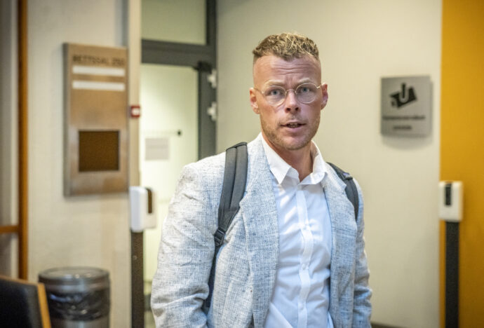 Dagbladets politiske journalist, Steinar Solås Suvatne, under rettssaken mot Laila Anita Bertheussen i sal 250 i Oslo tingrett onsdag. Bertheussen, som er samboer med tidligere justisminister Tor Mikkel Wara, er tiltalt for angrep på demokratiet og trusler mot ledende politikere. (Foto: Ole Berg-Rusten/NTB).