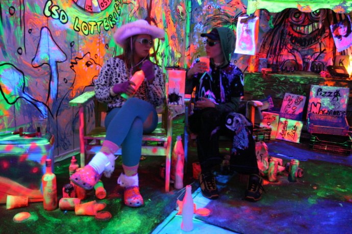 – I det senkapitalistiske samfunnet, der de økonomiske, abstrakte kreftene gjør hverdagen uvirkelig, og hvor individet selv fungerer som verktøyet for markedsføringskreftene, kan kunstnere som Mor og Jerry – med sin DIY trash-estetikk, og med sine hybride piratkopierte merker og produkter – sees som opprør, sier Winther.