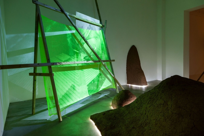 På UKS viser Wanthiang ulike arbeider, men som først og fremst oppleves som en helhetlig installasjon. I enden av den trange korridoren, som leder inn i selve utstillingen, møter publikum et varmt og mystisk landskap.