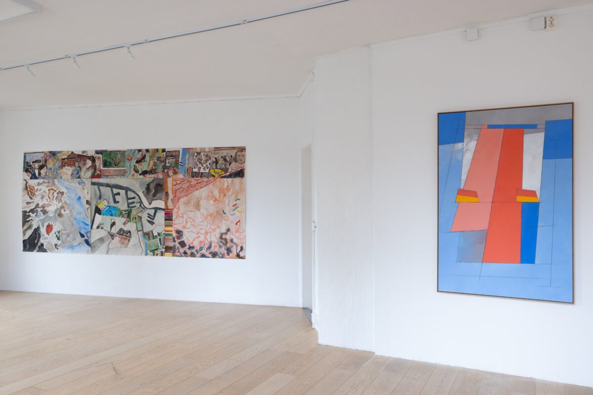 Utstillingstittelen «Narrative Disrupts Abstraction» hinter til en fortellende kraft som kjemper med med Jægers abstraksjoner. Det er trolig nederlandske Madelon Verbeek som er ansvarlig for dette. Vi har fulgt hennes utvikling siden fresco-utstillingen på Muralverkstedet (der Jæger holder til) og masteravgangsutstillingen på Khio i overlyshallen på Kunstnernes hus, der hun bidro med et massivt tekstilarbeid. Siden har hun hatt atelier i sistnevnte bygg og dyrket sine fargesterke hukommelsesvandringer i form av maleri, stoff og tegninger, der hun sammenfletter personlige erfaringer og kulturelle forskjeller.