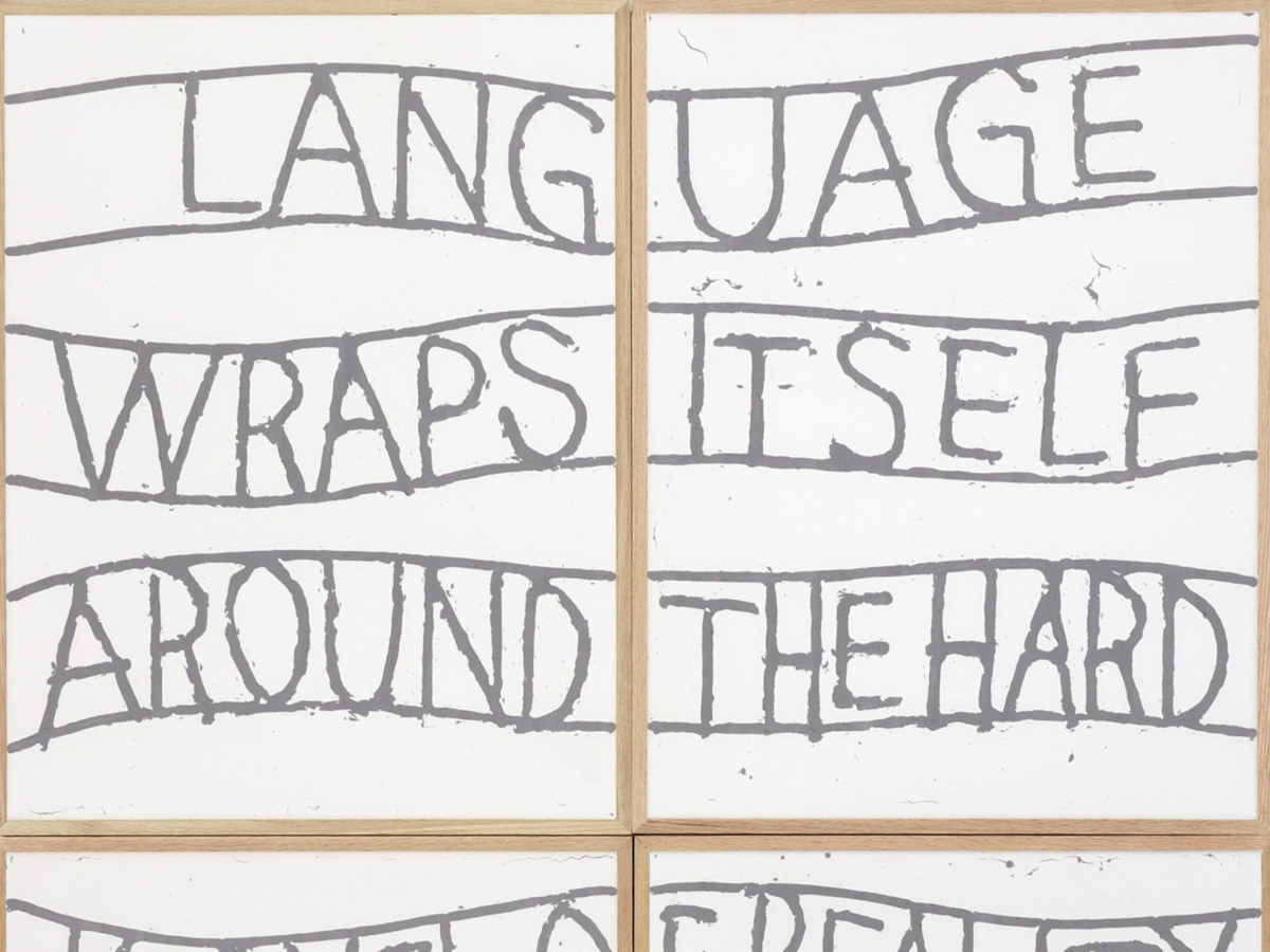Utstillingen, med den lange tittelen «Language Wraps Itself Around The Hard Kernel Of Reality Like A Thin Coat Of Paint», åpner 8. august klokken 18.00.