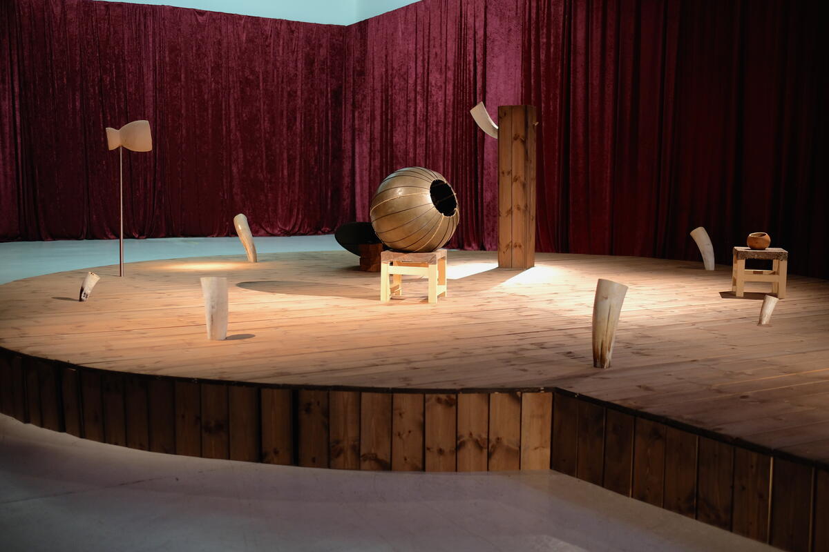 Den henter impulser fra afrikansk filosofi og operatradisjoner, og tilsammen blir det en installasjon som utfordrer grensene for hva og hvordan vi ser kunst.