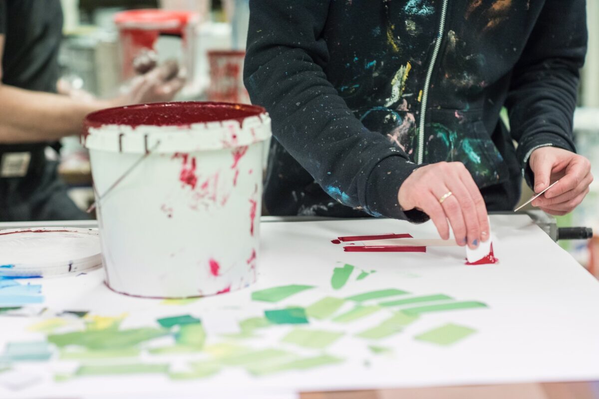 Hun eksperimenterer og leker, og i øvelsen blir det som kunne vært feil til noe fint. Her stemmer den gamle klisjeen: Det er prosessen som er målet.