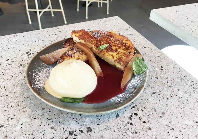Et kjapt blikk på menyene i grovt naturfarget papir viser avocadotoast, eggs benedict og diverse vaffel-varianter. Vårt frokostbehov klokken fire på ettermiddagen er fint nok dekket av utvalget.