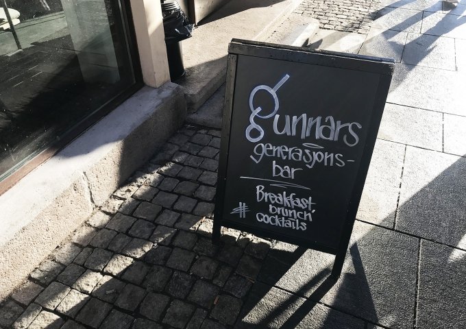 Etter en sen kveld på byen dagen i forveien, har vi googlet oss frem til Gunnars Generasjonsbar. Et nytt sted i Torggata som frister med «Breakfast, brunch and cocktails all day!».