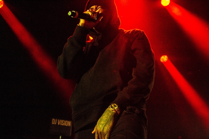 På papiret er denne konserten en nesten stereotypisk rap-konsert. En gigantisk sikkerhetsvakt står med armene i kors på scenen, YG forsyner seg liberalt fra en flaske Patron på DJ-bordet, mens tre småstolte damer står og danser fra bak stenen.