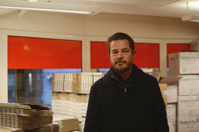 Her på det lokale Posten-kontoret på Grünerløkka, for å hente noen vinylplater han har bestilt fra Discogs. (Foto: Danby Choi.)