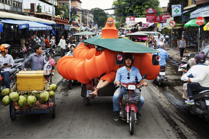 «A beast, a god, and a line» er direkte samfunnskritisk. Noen verk har budskap som slår betrakteren i fleisen, mens andre er som «Srie Bun» av Than Sok, den krever litt lesing før man innser hva man ser på. Verket ligner noen filleryer som er hengt opp på veggen, de er fullstendig trivielle. «Filleryene» viser seg å være geistlige plagg som stammer fra sekter innen Kambodsjas theravada-buddhistiske religion, og de representerer rangstigen til munker. Sok stiller spørsmål ved den symbolske kraften disse kappene gir dødelige menn ved å perforere kappene. Uten bakgrunnskunnskapen om deres historie, mangler de både tyngde og mening, og betrakterens kunnskapsmangel ovenfor andre kulturer blir åpenbart.