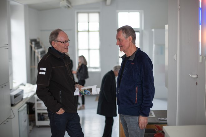 Per Hess (t. h.) i sitt atelier under Oslo Open i 2016. (Foto: Audar Kantun)
