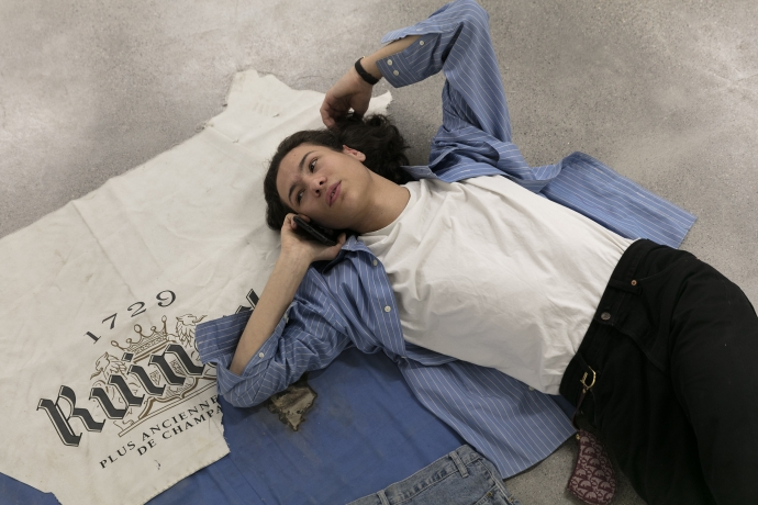 Det er helt sant. Wang sitter fortsatt i de dekonstruerte klærne han skal vise, og snakker om det kompliserte forholdet han har til at alt må settes i bås. Kanskje gjelder dette utdanning også? Kuratordebutanten kaller det for et unødig press vi setter på oss selv, men er det i like stor grad en bås vi setter oss selv i?
