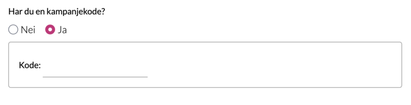 I registreringsskjemaet blir du spurt om du har en kampanjekode. Velg Ja og skriv inn koden (kun synlig for innloggede Subjekt Pluss-abonnenter).
