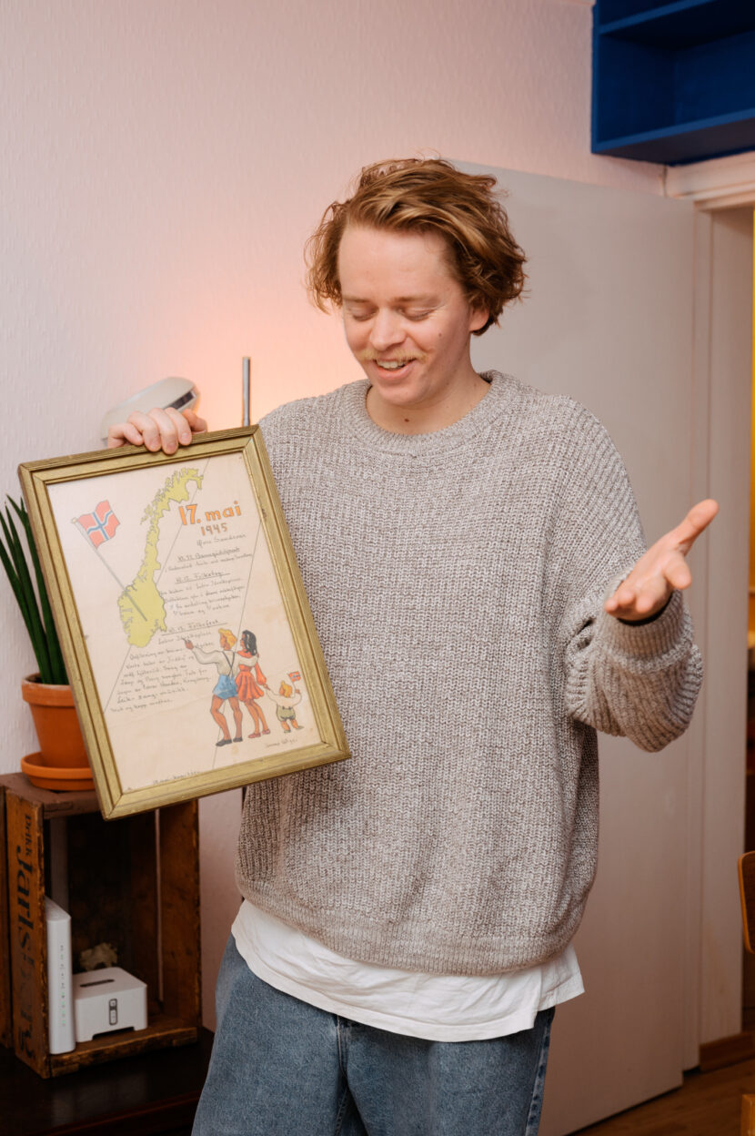 Moren hans er lærer, og de fant den gamle plakaten på loftet til ungdomsskolen hvor hun jobber.