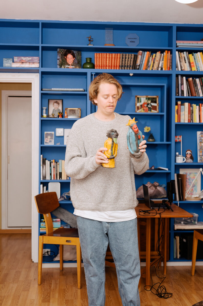 De hjemmelagde tingene er spesielt viktige. Som de to skulpturene moren har laget av ham og kjæresten.