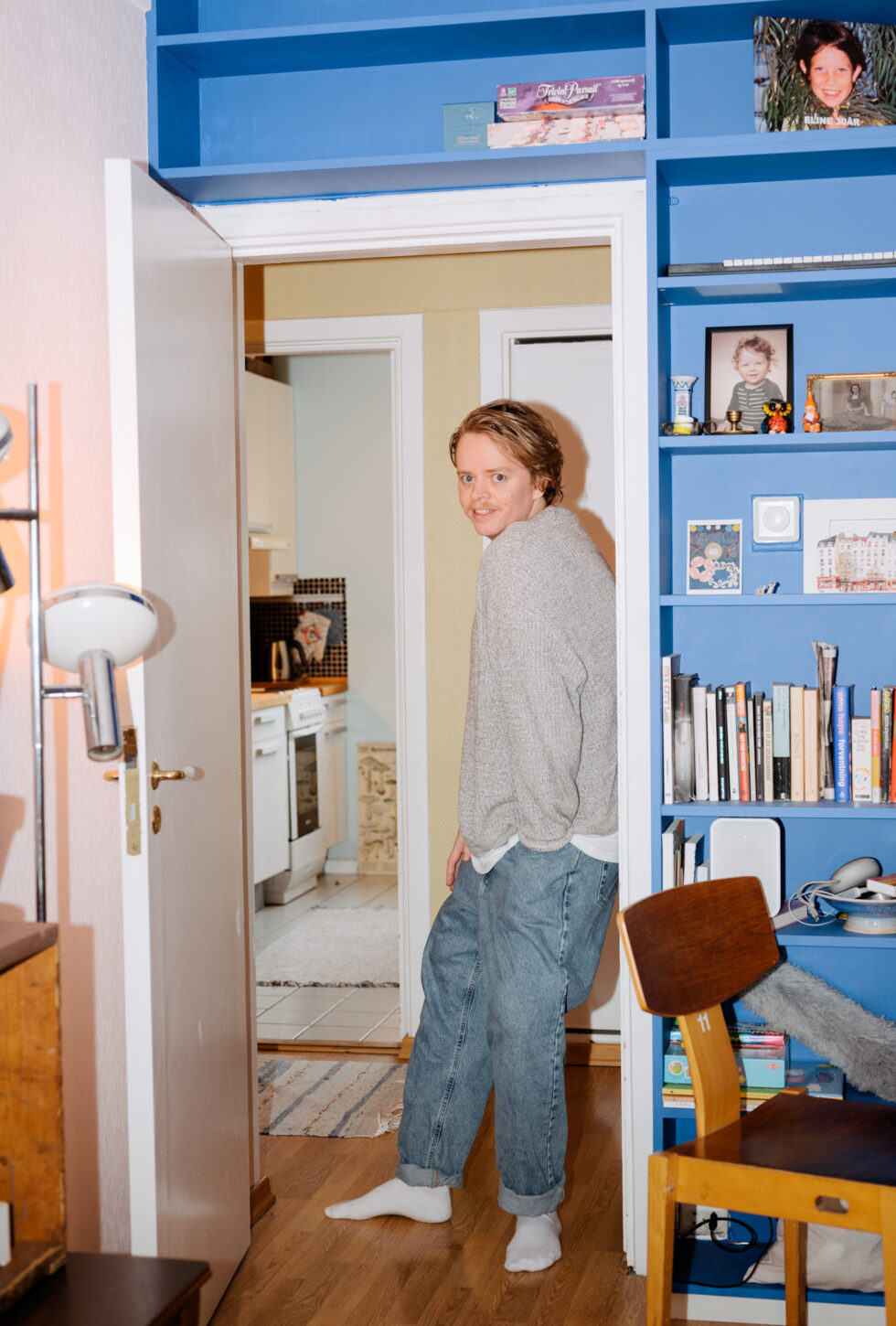 Vi trodde vi skulle få se en rotete ungkarsleilighet, men ble i stedet møtt med et hjemmekoselig og nøye innredet hjem. Proppfullt med plakater, planter og nostalgi. Fargene danser i takt med hverandre, og gjenspeiler det fargerike 90-tallets gode stemning.