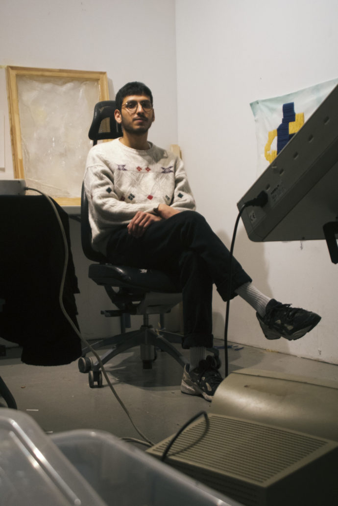 Prosjektskolen-student Rohban Malik (22) jobber primært med materialbaserte uttrykk, men er glad for å kunne lære om flere teknikker og formater. I disse dager tar han del i performancekurset «Speech-based performance» på Prosjektskolen. (Foto: Brage Sunde.)