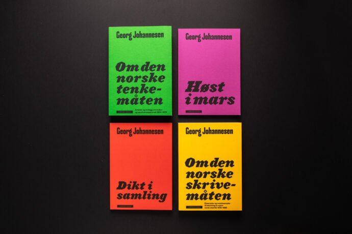 – Særdeles konsekvent bruk av kun to ekspressive typesnitt og sterke farger bygger en meget solid serie-identitet. Overdrevent stort portrett av forfatteren på baksiden, som er tatt året boken er utgitt, fører oss umiddelbart tilbake til tiden boken er skrevet. Omsorgsfullt typografert materie med høy lesbarhet. Designet kommuniserer samtidig forfatterens fargerike karakter. Bonus med kontrastfarge på innsiden av mykpermen. Ekspresjonistisk, enkel og kraftfull bokserie, skriver juryen i sin begrunnelse.