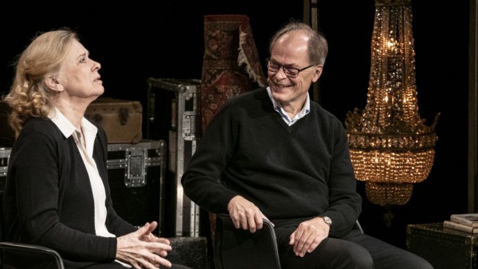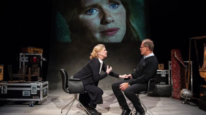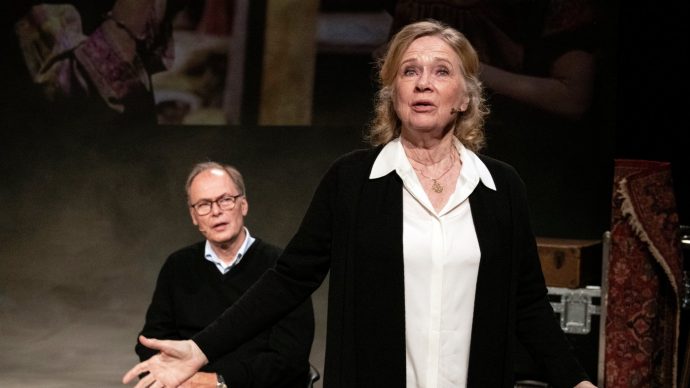 Scenebildet er enkelt. Ullmann og Remlov sitter på hver sin stol, ansikt til ansikt, omkranset av minner. Bak kofferter, bøker og lyskastere prosjekteres det bilder av kveldens stjerne. Det er uvisst hvilken rolle regissør Bentein Baardson har hatt i utviklingen av forestillingen, og Ullmann virker fri til å fjerne seg fra manus som det selv passer henne. Det passer oss like bra, for Ullmann er som kjent en glimrende historieforteller, og utelater heller detaljer enn å by på for mye.