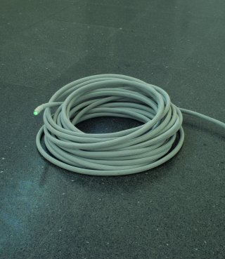– «OP» var en 60 meter lang fiberoptisk kabel som fra himlingen i overlyssalen trakk lyset ned til første etasje gjennom husets arkitektoniske kropp. Fibrene i kabelen leder lys i prinsipp av totalrefleksjon, og lyset kan på den måten bøyes. I enden av kabelen kunne man derfor skimte et svakt spaltet overlys, analogt og direkteoverført fra overlyssalen.