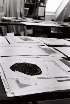 Sortert utvalg av Nicolaisens tegninger (foto: Julia Kidder.)