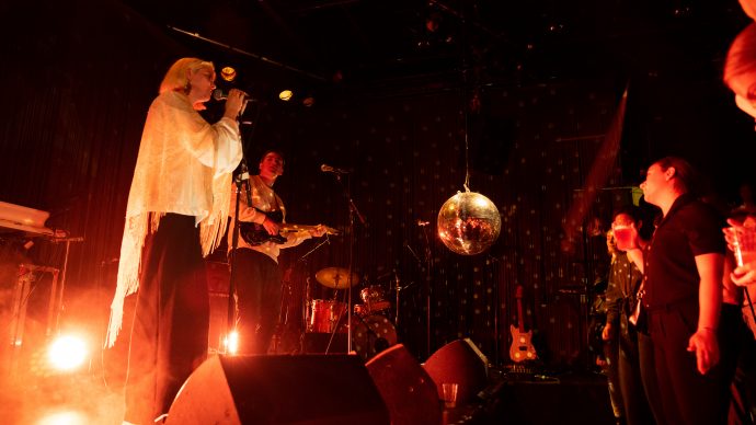 To bongotrommer forsøker å komme seg gjennom folkehavet, og jeg blir presset opp til overetasjen igjen. Ja, faktisk dyttet. Men godt er det, for der venter Solå. På scenen står Sol Sunnanå Eriksen, kjent som Solå, sammen med en gitarist. Med en klar og lys stemme vinner hun raskt kveldens pris for beste vokal med sin lo-fi R&B.
