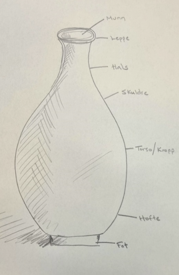 «I Japan har vi en liknende narrativ», fortsatte han «selv om det ikke er like kjent blant folk flest.» Kuwada-san pekte på vasen han hadde tegnet. «Øverst på vasen – åpningen – kaller vi for munnen. Deretter kommer kanten – leppen – så halsen, skuldrene, kroppen, hoftene og nederst foten.» Det var enkelt å se parallellen. Ord som munn, hals og fot, som jeg hadde brukt mange ganger uten å reflektere over hvorfor, fikk plutselig ny mening.