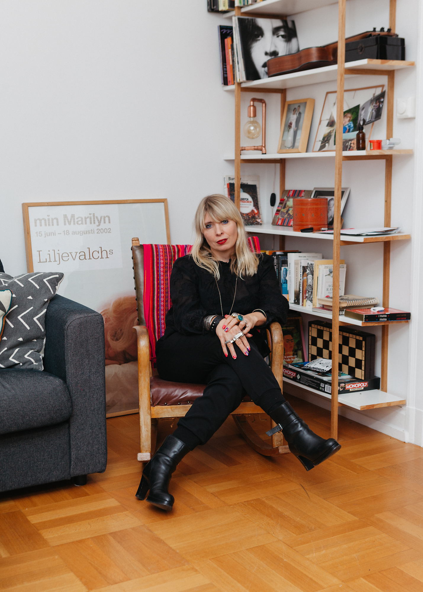 Portretter av Frida Kahlo og familiebilder pryder veggene, sammen med retro møbler og et interiør som ellers vitner om en sterk antropologisk interesse. Bokhyllene inneholder et knippe klassikere, en solid platesamling, samt en imponerende mengde sykkelhjelmer.