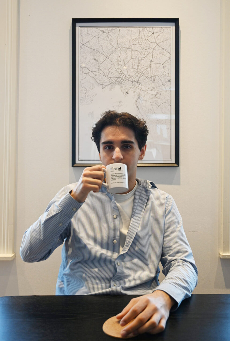 Omar Svendsen-Yagci fra Gjøvik er ny leder i Unge Venstre. Vi fikk komme på besøk for å høre hva han mener det vil si å være liberal i 2024. (Foto: Oda Sofie Mathisen Gallefoss.)