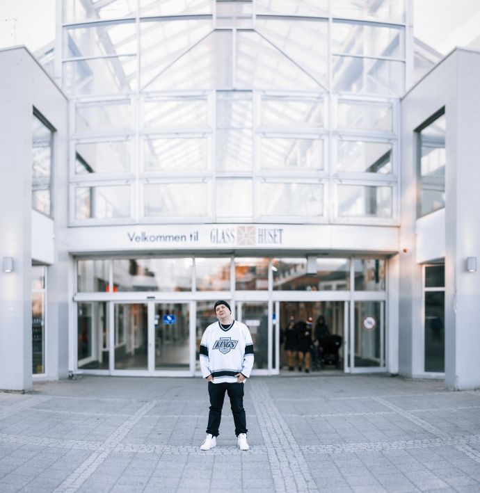 Glasshuset pryder også albumcoveret, men en kanskje enda mer kjent «sak» fra byen er nettopp rapperen som står foran det. Både fra perioden i Tungtvann, som vant Edvardprisen for albumet «Nord og ned» i 2000, men også for sin solokarriere som Joddski og til og med Jørg-1.