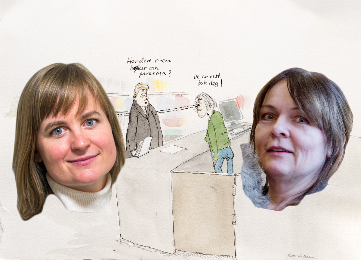 – Det var veldig nedtur å få sparken. Så da var det veldig hyggelig at Klassekampen ville ha meg, sier Mette Hellenes til Subjekt. Her sammen Klassekampens redaktør Mari Skurdal. (Montasje: Subjekt.)