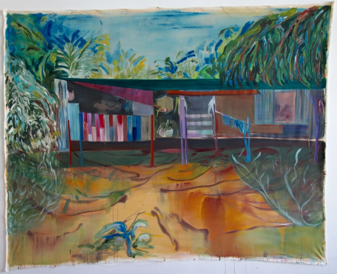 På LNM viser Apichanya Wanthiang malerier som tar utgangspunkt i lokale og globale konsekvenser av klimaendringer gjennom malerier med motiver hentet fra flom- og oversvømmelseskatastrofer.