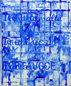 Flere av de blå verkene dine har tekst på seg. Hvilket potensiale har det å bruke ord i malerier?