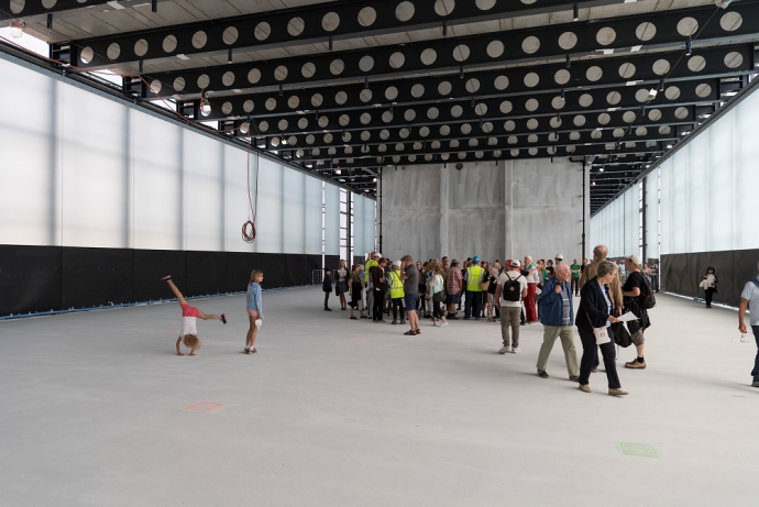 Det vi vet er at tak-hallens 2.400 kvadratmeter skal fylles med kunstutstilling slik at folk helst ønsker å komme tilbake, eller kanskje overbevise om at dette, som trolig er Norges mest debatterte visningsrom noensinne, var verdt det.