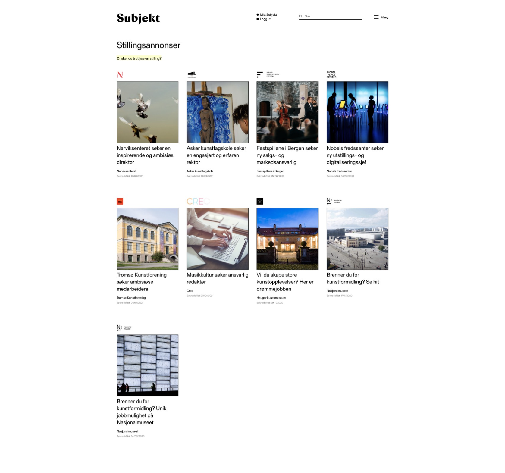 - I Subjekts aktivt markedsførte stillingsportal for kunst- og kulturjobber