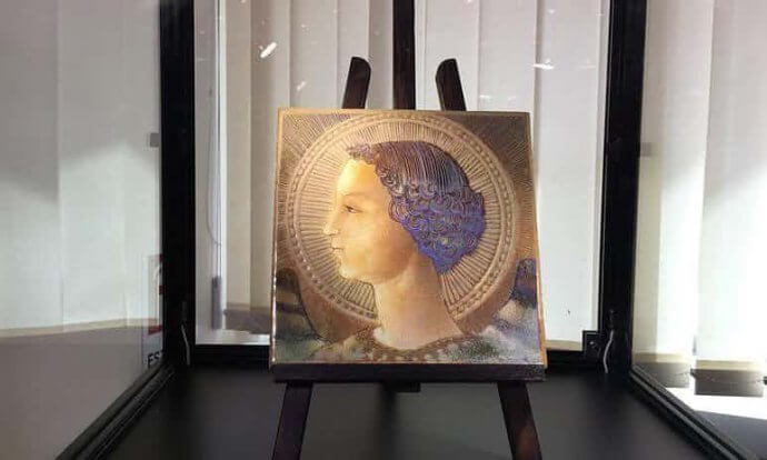 Nå mener Ernesto Solari at han har oppdaget et nytt da Vinci-verk: En liten maiolica (en slags flis) som viser erkeengelen Gabriel.